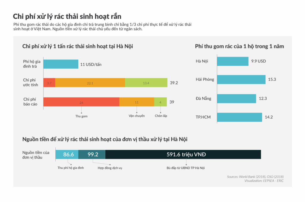 The data shows that the household waste collection fee in Hanoi is only one third of the estimated and reported waste treatment costs. About 76% of the budget for domestic waste treatment come from the city budget. With the most common method for waste treatment in Vietnam is landfilling, the number of landfills is higher than in more developed regions. However, most landfills are unsanitary.