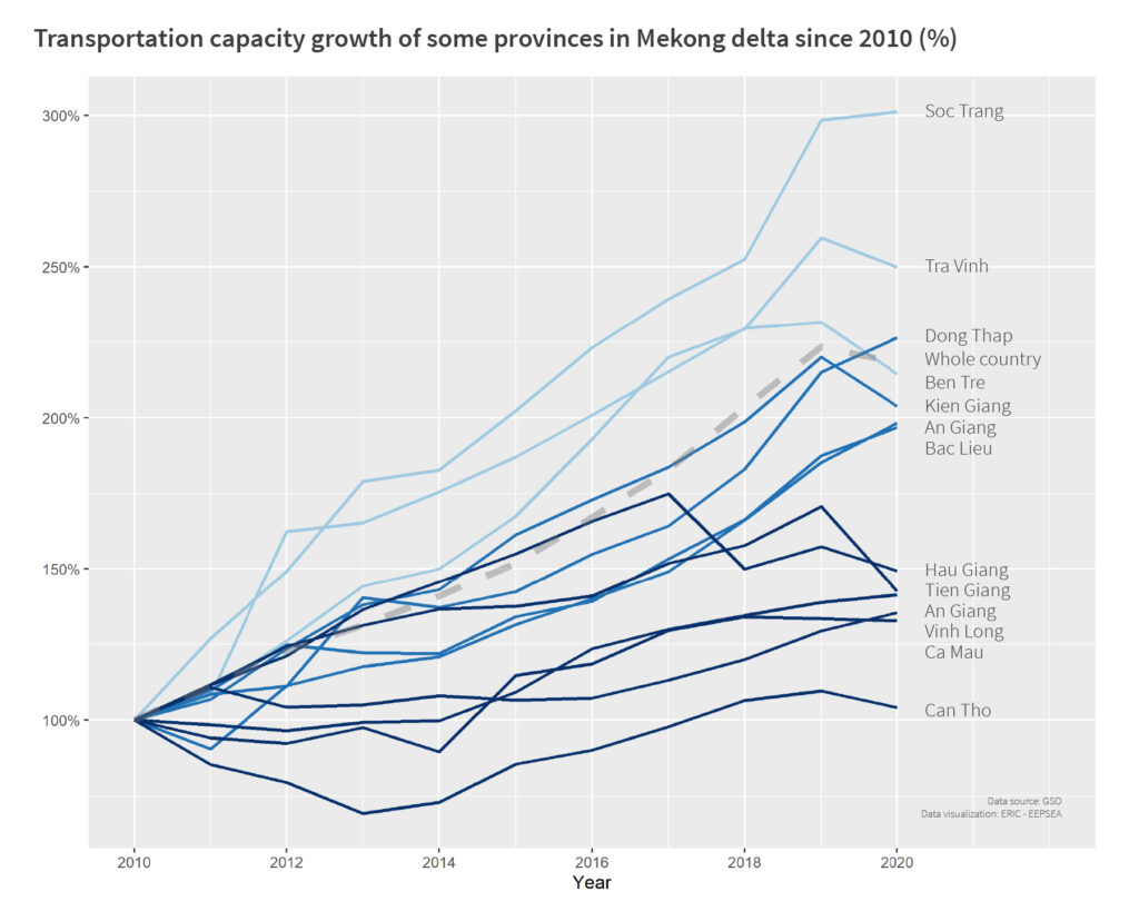 By region, the growth of transportation in the Mekong Delta has been far lagged behind that of other regions, which is only half of the national rate.