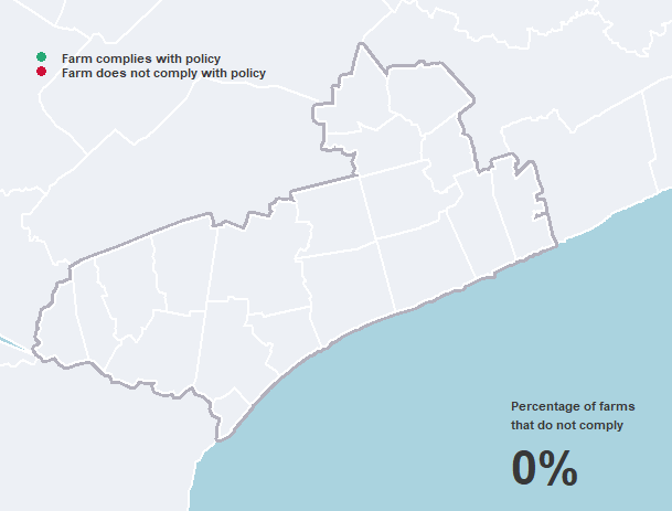 The percentage of households which did not comply with the regulation in Bac Lieu is 66%. The average percentage of mangroves in Bac Lieu is 30.23%.