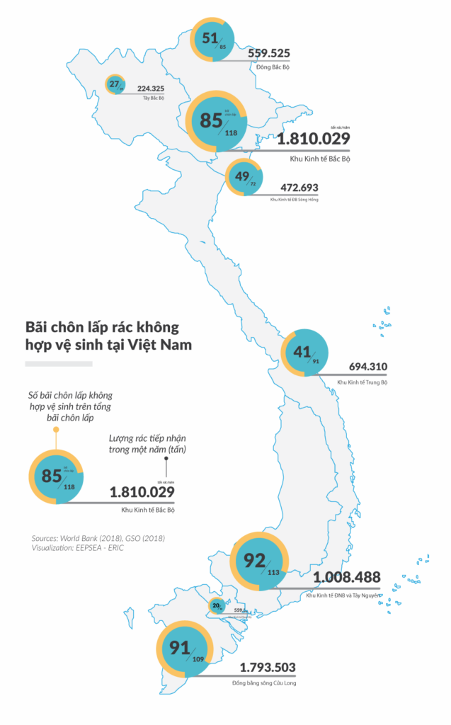 Given the fact that the most common method for solid waste treatment in Vietnam is landfilling, the number of landfills is higher in more developed regions. However, most landfills are unsanitary.