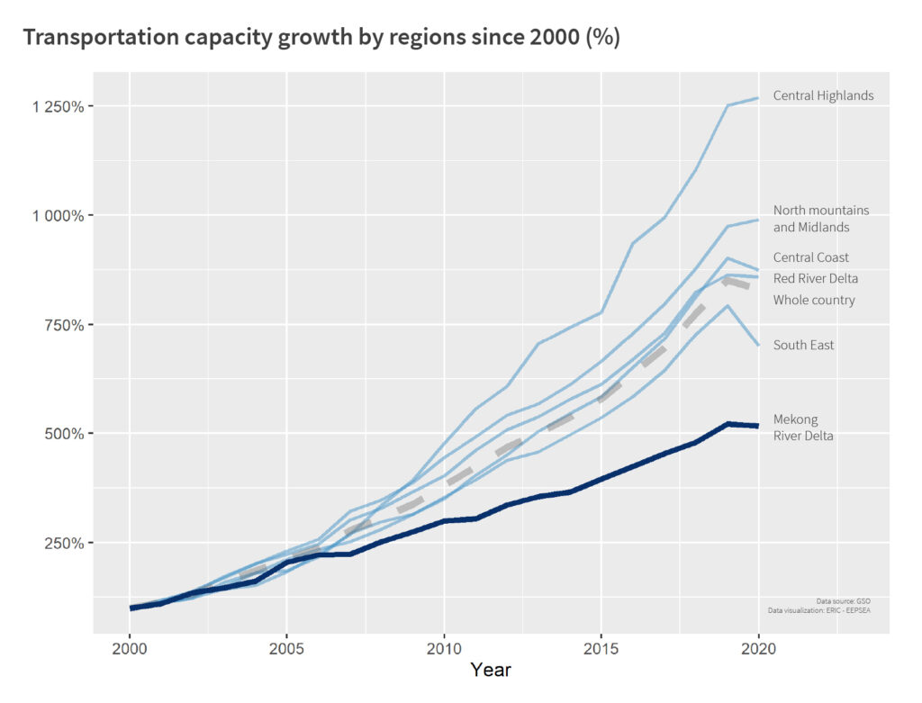 The growth of transportation in the Mekong Delta has been far lagged behind that of other regions, which is only half of the national rate.